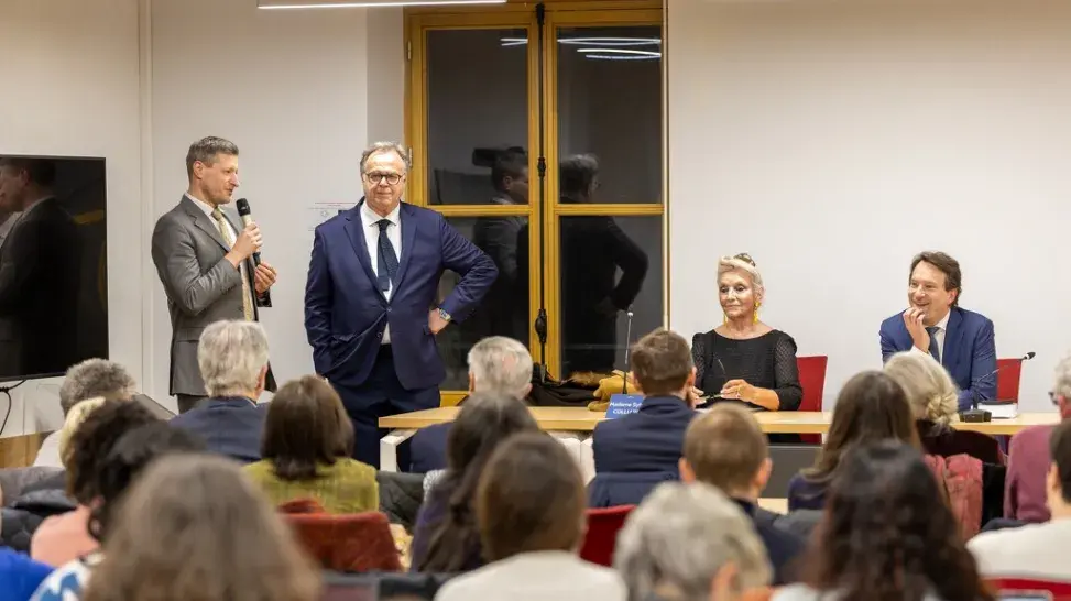 Après les discours introductifs de François Nawrocki, directeur du service commun de la documentation (SCD), et de Pierre Malié, responsable de la bibliothèque Jean-Claude-Colliard, Sylvie Colliard a pris la parole pour retracer avec émotion la carrière de son époux, mettant en lumière ses engagements académiques et institutionnels. Jean-Philippe Derosier, professeur de droit public, membre de l'Institut universitaire de France et directeur de l'ouvrage Jean-Claude Colliard, précurseur de la science constitutionnelle, a ensuite pris la parole et tracé le portrait intellectuel de ce dernier. À l’occasion de cette soirée de conférence, Sylvie Colliard a fait don d’une partie de la bibliothèque de son époux. Ces ouvrages font désormais partie des collections de l’université Paris 1 Panthéon-Sorbonne.