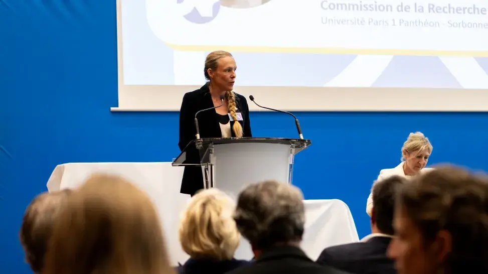 C’est ensuite Cécile Faliès, vice-présidente chargée de la Recherche à l’université Paris 1 Panthéon-Sorbonne qui s’est exprimée : « Cette ambition partenariale et collective a impliqué une gouvernance partagée très riche, chargée d’échanges, à travers différentes instances qui ont été des lieux concrets d’élaboration des actions du réseau qui naît aujourd’hui. »