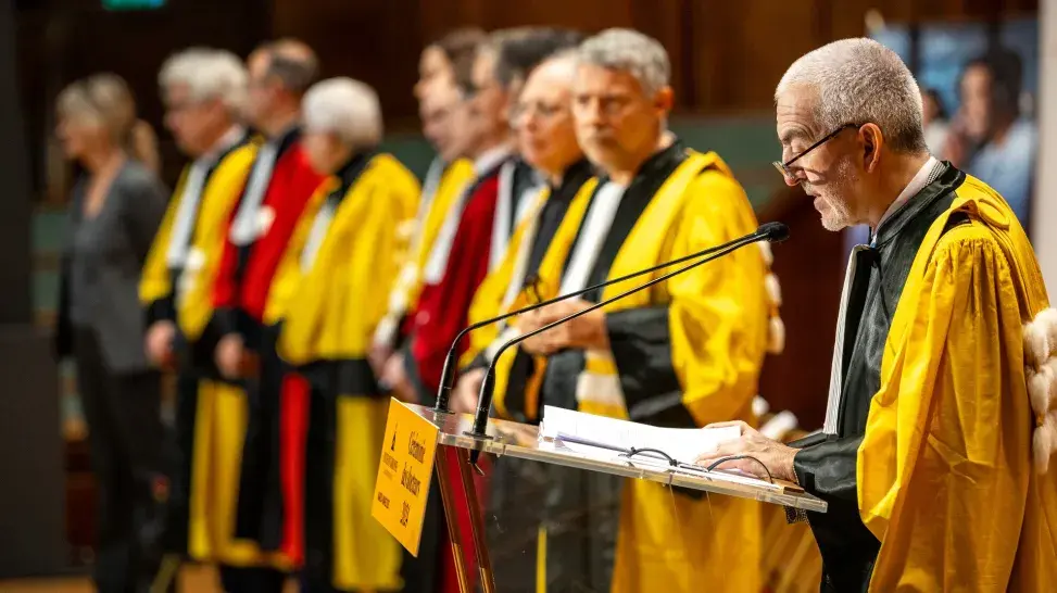 « Avec un décalage ancré dans nos traditions, la cérémonie des docteurs célébrée en 2025 fait honneur aux étudiants ayant soutenus leur thèse en 2024 », introduit François Chausson. Après avoir félicité les docteurs de la promotion 2024, ce dernier a précisé que ces parcours d’excellence sont également l’œuvre d’une réussite collective. « Il faut souligner le travail accompli par les directeurs d’écoles doctorales mais aussi les chargés administratifs. »