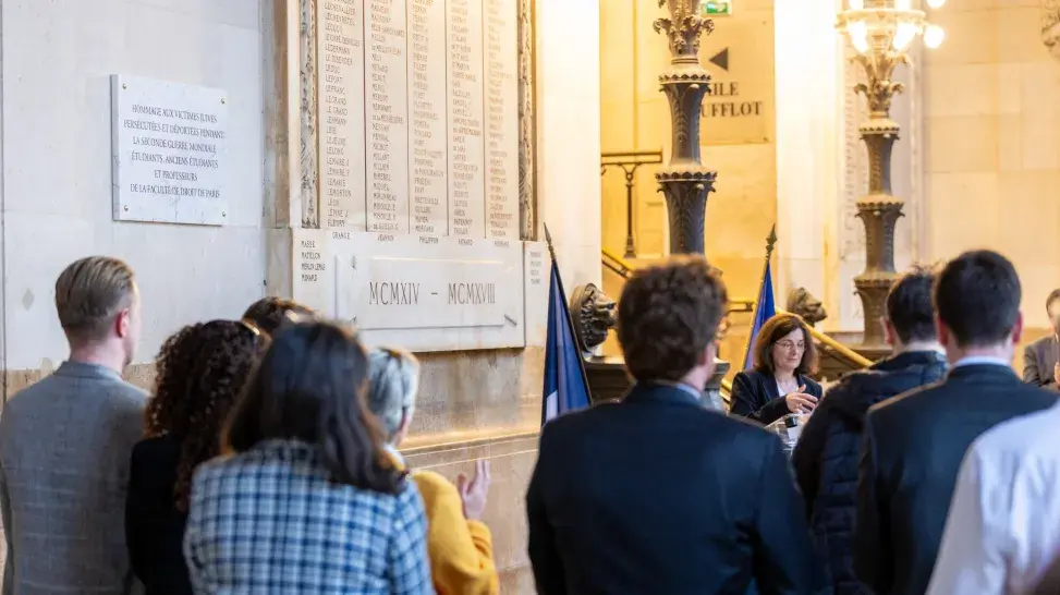 Dans le hall Saint-Jacques, les présidents des deux institutions, Christine Neau-Leduc et Stéphane Braconnier, ont dévoilé une plaque commémorative rendant hommage aux étudiants et personnels déportés et persécutés durant la Seconde Guerre mondiale (1939-1945).