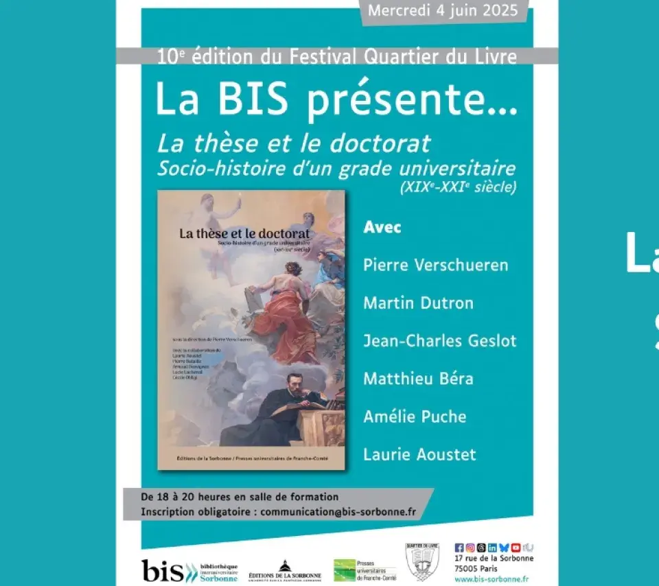 Rencontre Image de couverture Le mercredi 4 juin 2025 18h00 20h00 La BIS présente... La thèse et le doctorat. Socio-histoire d'un grade universitaire Ajouter à mon calendrier